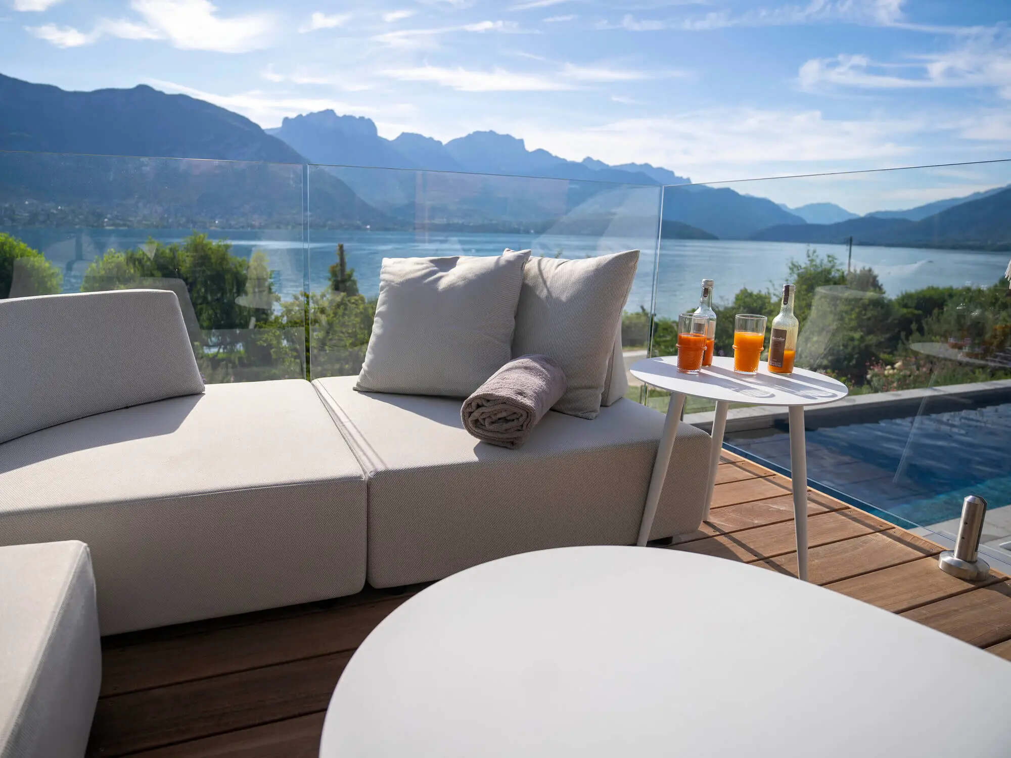 Nous avons dessiné pour les plus grandes joies des petits et des grands une magnifique piscine panoramique. Ouverte depuis le 19 Juin 2023, c'est une magnifique vue sur le lac et ses montagnes qui s'offre à vous depuis la piscine. L'accès à la piscine est possible pour nos clients extérieurs, sur réservation soit de l'espace privatisé le Nuage, ou d'un double bed sur notre terrasse sérénité. Les tarifs et disponibilités sont accessible sur notre boutique en ligne. Vous pourrez offrir ou réserver directement un accès avec la formule qui vous convient. En demi journée ou à la journée..